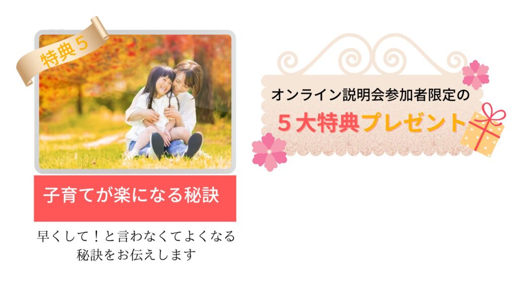 イライラしない育児法や、在宅で収入を増やしていくためのヒントを、たくさん掴み取ることができるはずです!